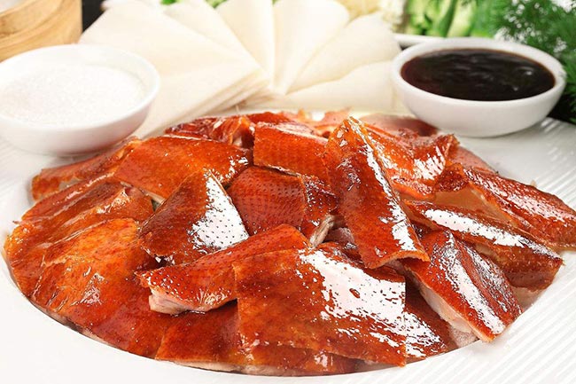 烤鴨是具有世界聲譽(yù)的北京著名菜式,起源于中國南北朝時期,《食珍錄》中已記有炙鴨,在當(dāng)時是宮廷食品。用料為優(yōu)質(zhì)肉食鴨北京鴨,果木炭火烤制,色澤紅潤,肉質(zhì)肥而不膩,外脆里嫩。北京烤鴨分為兩大流派,而北京很著名的烤鴨店也即是兩派的代表。它以色澤紅艷,肉質(zhì)細(xì)嫩,味道醇厚,肥而不膩的特色,被譽(yù)為“天下美味”