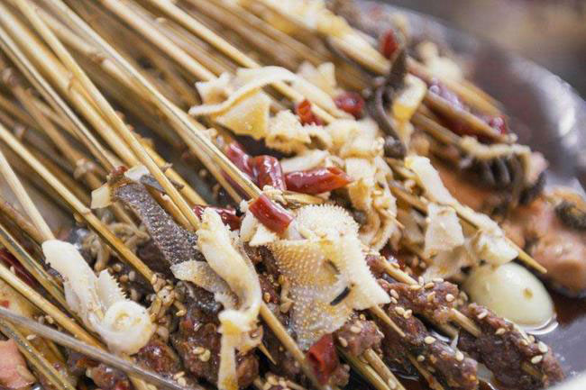 冷串串很早出現在二十世紀八十年代中期。那時重慶火鍋剛進入成都餐飲市場不久,一些城鎮待業人員為了生計,就在一些熱鬧的場所如商場、影劇院、錄像廳等附近擺攤經營“串串香”。以竹簽串豆干、兔腰,在鹵鍋中燙熟,蘸上麻辣調料,“好吃嘴”們邊走邊吃,逍遙自在。風味濃郁、菜品豐富、服務優質,價廉消費而深受大眾青睞,食客絡繹不絕”
