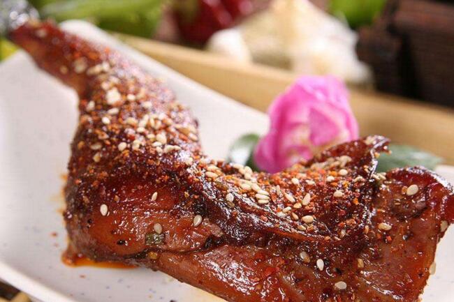烤兔,作為四川的傳統小吃,時尚風味,經多次改良,在三代祖傳獨特工藝的基礎上,加入了特有的中草藥配方(香辣爽口而不上火),選料更加考究(用兔全部采用綠色生態兔),配料精心調制,口味更加香醇,麻辣卻不上火。烤兔肉厚處醇香粑軟,肉薄之處酥香脆爽,細細嚼之齒間久久留香,不是野味勝似野味,是居家待客、娛樂休閑及旅游、探親的首選特色食品。