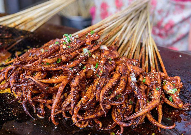 鐵板魷魚是一道街邊小吃,是用鐵板把魷魚煎熟后,再用鐵鏟將魷魚切段,然后撒上特制醬做成。其食材講究新鮮,鮮味完全來自食材本身。入口沒有一點腥味,頗受鐵板燒愛好者顧客群喜愛。好吃街、旅游景點、人流密集的小巷等等,都可以吃到鐵板魷魚這一特色小吃。也許你可以看見經營者不聽的揮動著手中的排刷,不停地翻滾著手中的魷魚串,鐵板上發出“嘖嘖”的聲音,一股香味飄到你的鼻前。我就知道,你口水在流淌了。。。